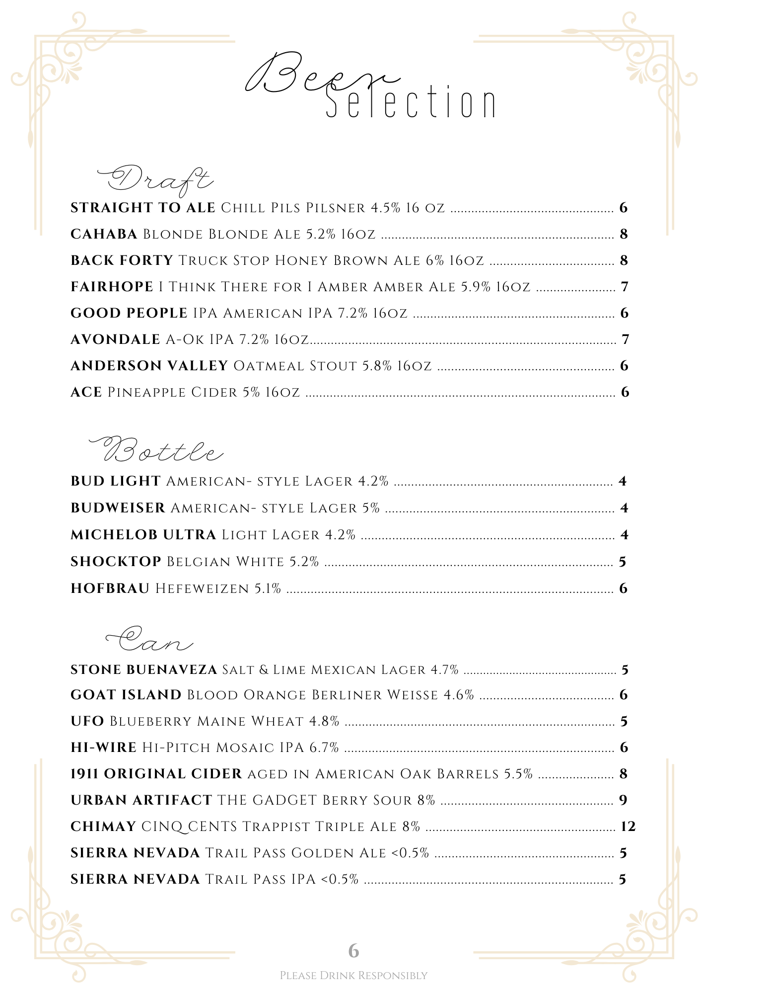 We change our menu daily and the menu for the day will be posted by 5:00 pm